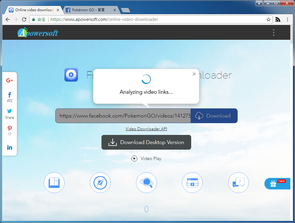 2. 接下來進入 Apowersoft Online Video Downloader 這個網址,把 Facebook 上影片的連結貼到中間的對話框裡。