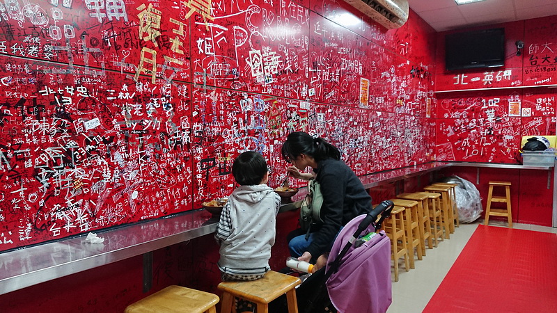 他的店面還算蠻顯眼的,按圖索驥應該不難找到。遠遠的就看到幾組客人坐在門口的板凳上吃冰,店內則是提供十來個座位,招牌和店面牆壁是以紅色為主,牆壁上的立可白留言塗鴉更是勾起了大家國高中學生時代的回憶…