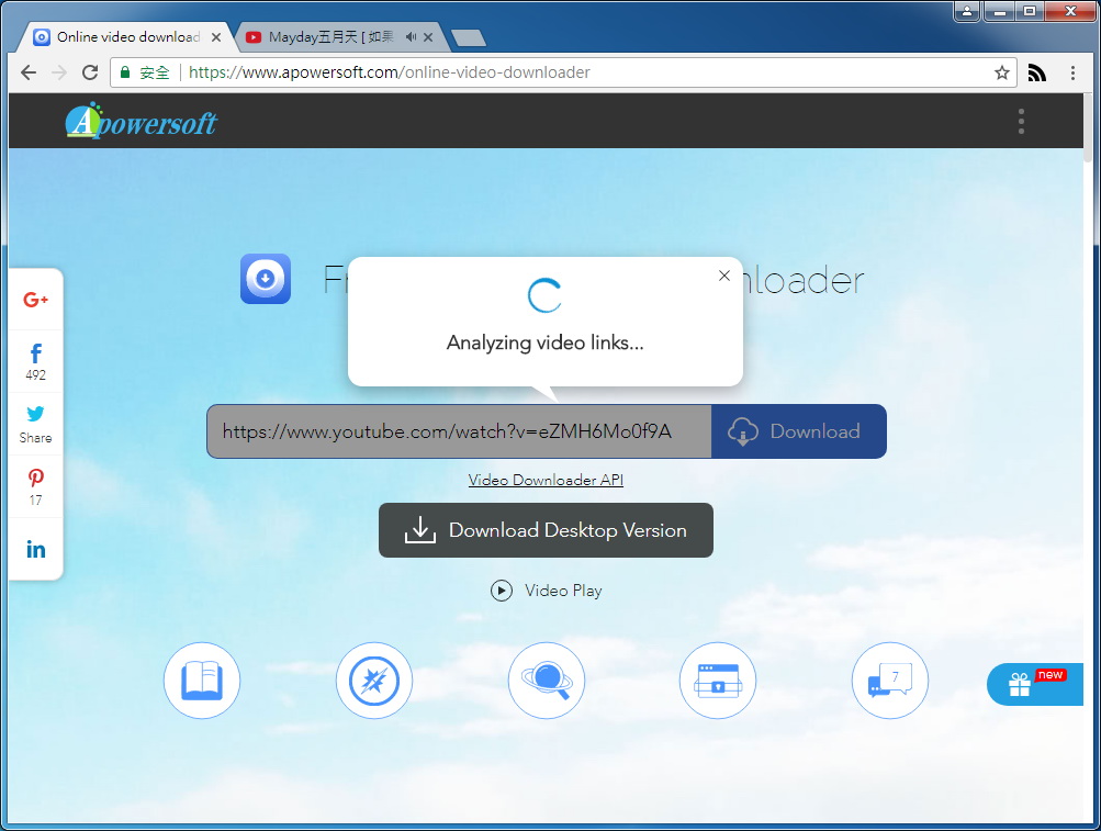 2. 接下來進入 Apowersoft Online Video Downloader 這個網址,把 YouTube 上影片的連結貼到中間的對話框裡。